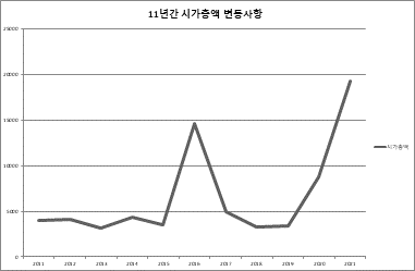 | 년도 | 시가총액 | 전년대비 변동률 |