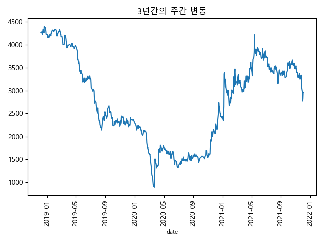 한화생명(088350)의 3년 동안의 주간 변화를 살펴보겠습니다. 3년간의 최저값는 895이며, 최고값은 4400입니다. 3년간의 상승률은 -30.4입니다.
