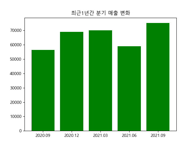 최근 1년간의 분기별 매출 변화를 확인해보도록 하겠습니다.