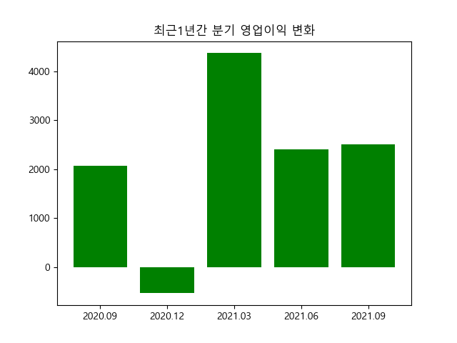 최근 1년간의 분기별 영업이익 변화를 확인해보도록 하겠습니다.