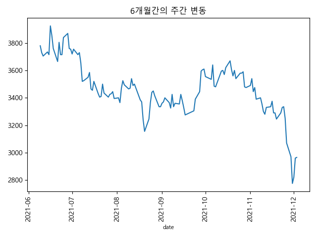 한화생명(088350)의 6개월 동안의 주간 변화를 살펴보겠습니다. 6개월간의 최저값는 2775이며, 최고값은 3925입니다. 6개월간의 상승률은 -21.56입니다.