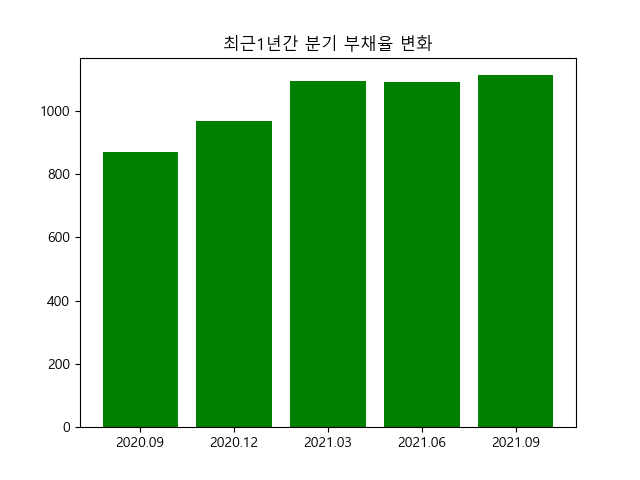최근 1년간의 분기별 부채율 변화를 확인해보도록 하겠습니다.
