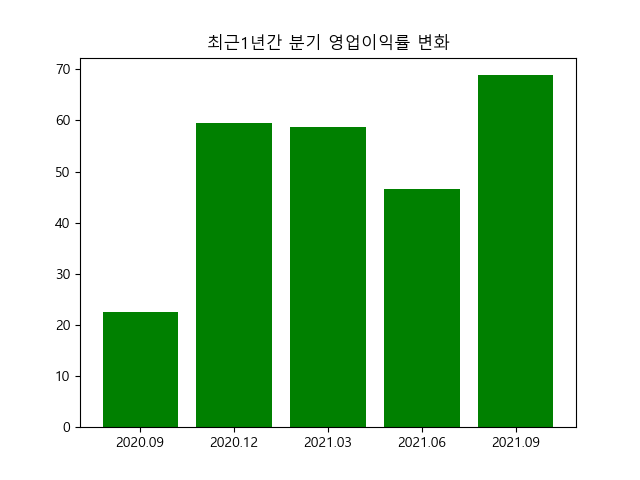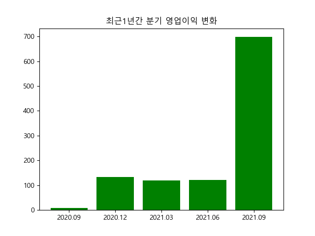 최근 1년간의 분기별 영업이익 변화를 확인해보도록 하겠습니다.
