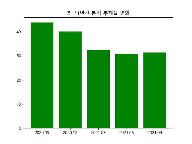 최근 1년간의 분기별 부채율 변화를 확인해보도록 하겠습니다.