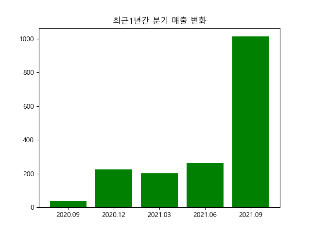 최근 1년간의 분기별 매출 변화를 확인해보도록 하겠습니다.
