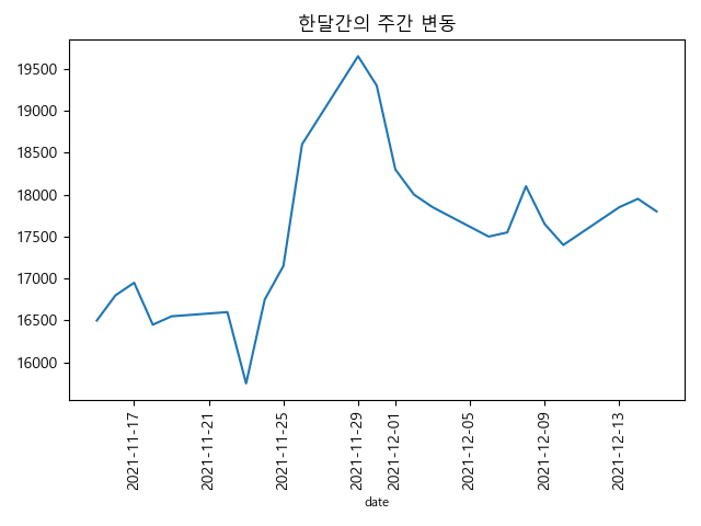휴마시스(205470)의 1개월 동안의 주간 변화를 살펴보겠습니다. 1개월간의 최저값는 15750이며, 최고값은 19650입니다. 1개월간의 상승률은 7.88입니다.